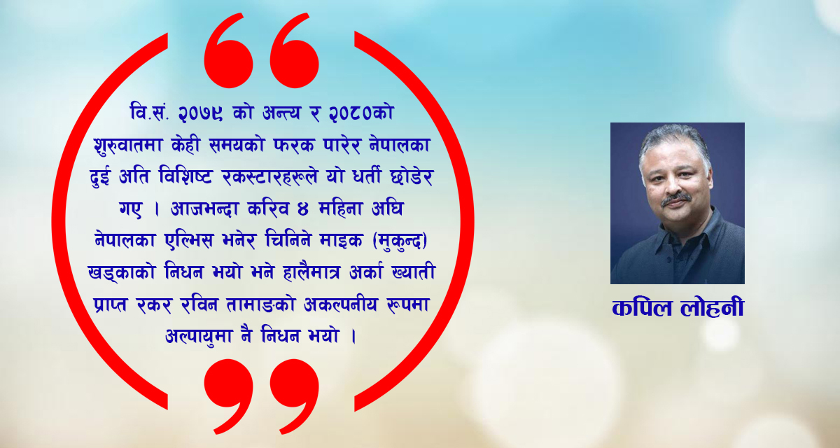 वि.सं. २०७९को अन्त्य र २०८०को शुरुवातमा केही समयको फरक पारेर नेपालका दुई अति विशिष्ट रकस्टारहरूले यो धर्ती छोडेर गए।