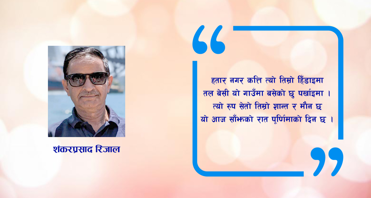 झुल्किएको बेहुली झैं त्यो रुप यो चन्द्र रातमा।