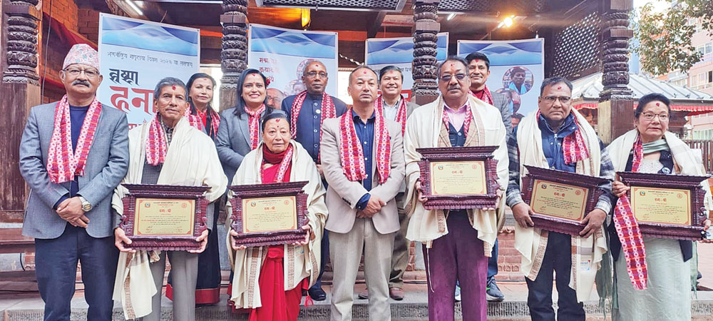 काठमाडौँ। काठमाडौँ महानगरपालिका–२२ ले साहित्य लेखनका माध्यमबाट नेपाल भाषाको संरक्षण र प्रवर्द्धनमा योगदान गरेका पाँच साहित्यकारलाई सम्मान गरेको छ । अन्तरराष्ट्रिय मातृभाषा रजत जयन्तीका रूपमा विविध कार्यक्रम आयोजना गरेर मनाउने क्रममा शनिबार वडाले ‘कविता वाचन तथा स्रष्टा सम्मान’ कार्यक्रम आयोजना गरेको हो । सम्मानित हुनु हुनेमा कथाकार पुष्प चित्रकार, कथाकार सुवर्णकेशरी चित्रकार, कथाकार तथा गीतकार निरञ्जनरत्न शाक्य, कवि नवीन चित्रकार र कवि श्रीराम श्रेष्ठ हुन् ।