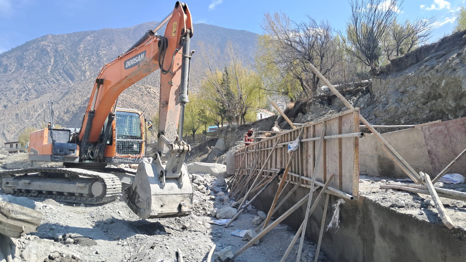 जोमसोम बजार जोगाउन धमाधम तटबन्धन गरिँदै