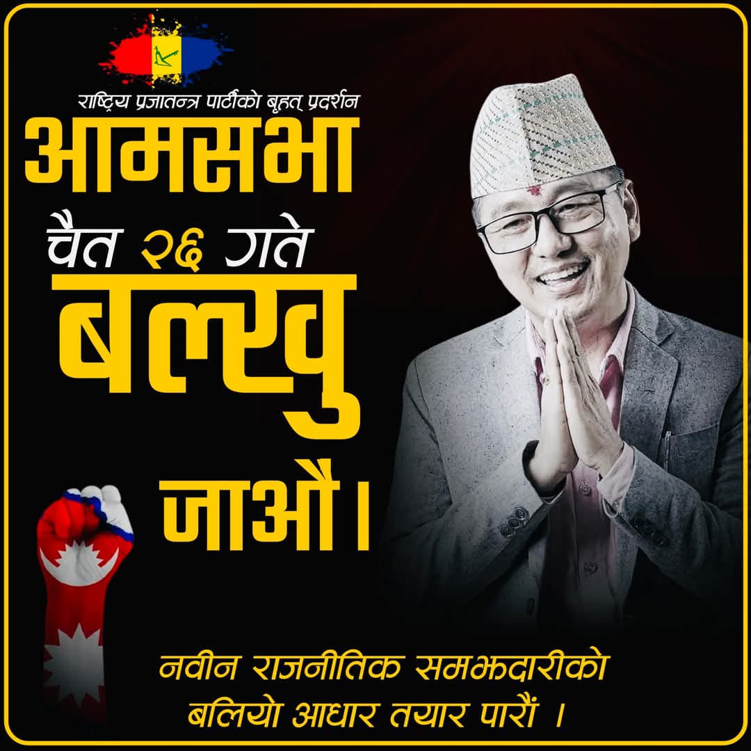 काठमाडौं। राष्ट्रिय प्रजातन्त्र पार्टीले आज बिशाल आमसभा प्रदर्शन गर्दैछ ।