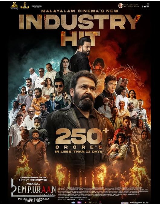 अब, १२ दिन पछि एल २ इम्पुरान मलयालम सिनेमाको इतिहासमा सबैभन्दा धेरै कमाउने फिल्म साबित भइसकेको छ । मेकर्स र मोहनलालले सामाजिक सञ्जालमा पोस्ट सेयर गरेर एल २ इम्पुरानले विश्वभरी २५० करोड कमाउने पहिलो मलयालम फिल्म बनेको जानकारी दिएका छन्।