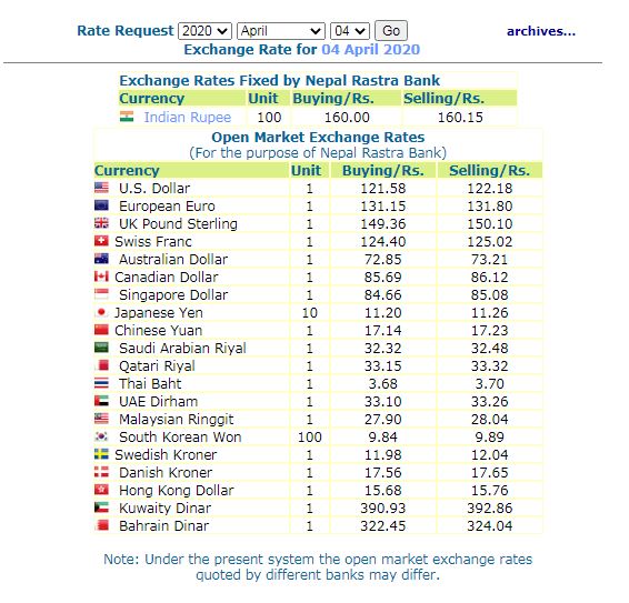 यस्तो छ सबै देशको विनिमयदर तालिका