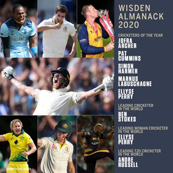 स्टोक्स र रसेललाई ‘विस्डेन लिडीङ क्रिकेटर इन द वर्ल्ड’ अवार्ड