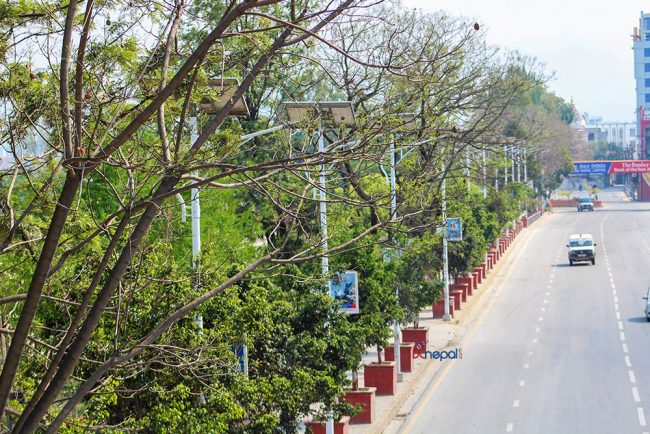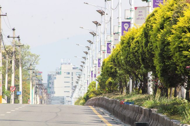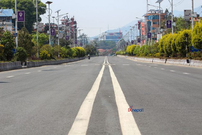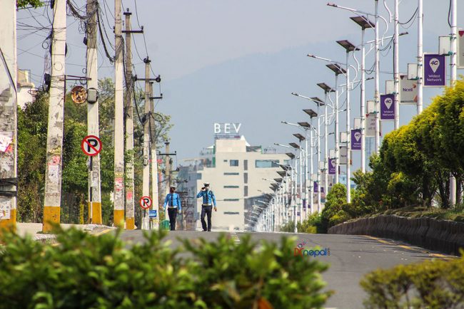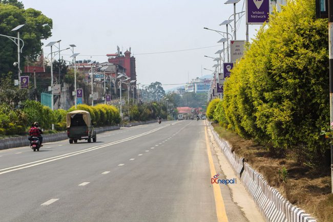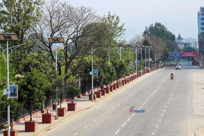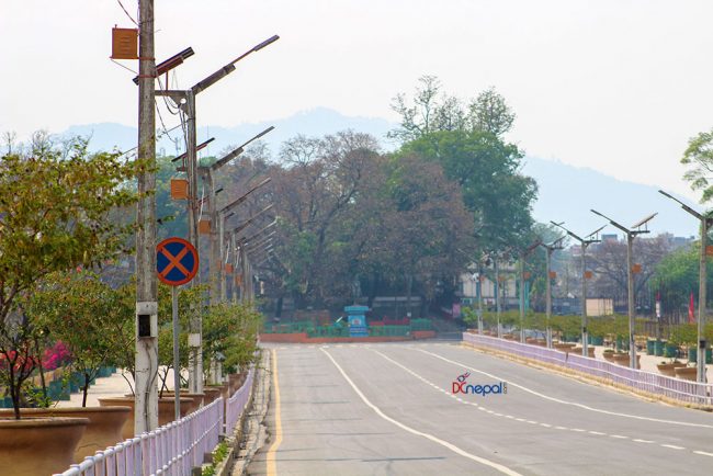 केहीसमय अघिदेखि कोरोना भाइरसको प्रकोप न्यूनीकरण गर्न सरकारले गरेको लकडाउनका कारण काठमाडौं उपत्यकाका सडकहरु सुनसान छन् ।