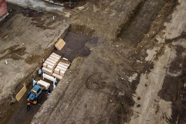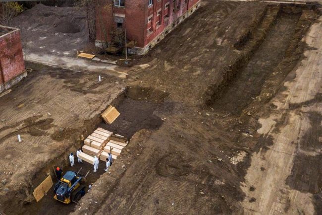 न्यूयोर्कमा नयाँ चिहानघाट बनाइँदैछन् ताकि कोरोनाभाइरसबाट मृत्यु हुनेहरुलाई गाड्न सकियोस् । डेलिमेलको रिपोर्ट अनुसार न्यूयोर्कको हर्ट आइल्याण्डमा सामूहिक चिहान बनाइएको छ जहाँ मृतकहरुलाई गाडिएको छ । जानकारीका अनुसार पहिले यहाँ ती व्यक्तिहरुलाई गाडिन्थ्यो जो लावारिस अवस्थामा मृत भेटिन्थे वा ती व्यक्तिहरु जसको अन्तिम संस्कारको खर्च उठाउन परिवार असमर्थ हुन्थे । तर, कोरोनाभाइरसको महामारीका कारण अहिले शवहरुको संख्या यति बढेको छ कि यहाँ सामान्य व्यक्तिहरुका शव पनि गाड्न थालिएको छ ।