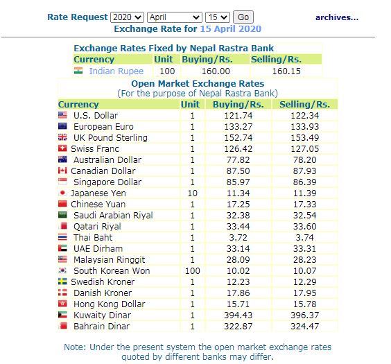 यस्तो छ सबै देशको विनिमयदर तालिका