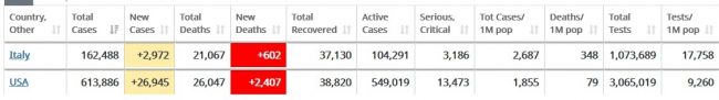 यस्तै चीनपछि लगत्तै कोरोनाको महामारी देखिएको इटलीमा पछिल्लो २४ घण्टामा ६ सय २ संक्रमितको ज्यान गएको छ। यो सँगै इटलीमा ज्यान गुमाउनेको संख्या २१ हजार ६७ पुगेको छ। इटलीमा हालसम्म १ लाख ६२ हजार ४ सय ८८ जना कोरोना संक्रमित फेला परेका छन् ।