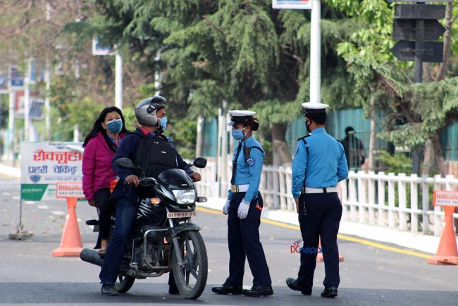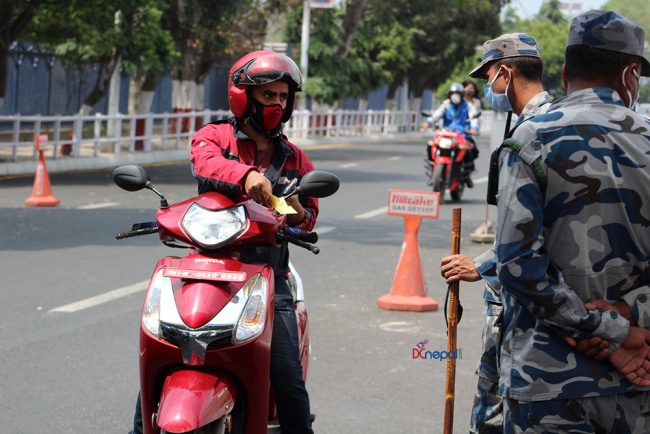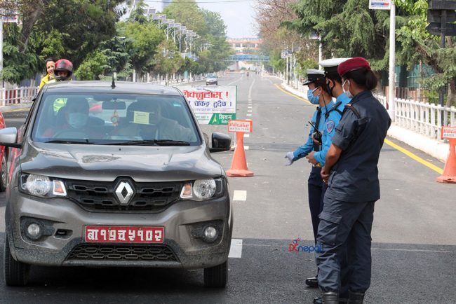 काठमाडौं । कोरोना भाइरस संक्रमणको जोखिम न्यूनिकरणका लागि सरकारले जारी गरेको लक डाउनको २४ औं दिन बिहीबार चेकजाँचमा झन कडाई गरिएको छ । अत्यावश्यक सवारी र केही पास बाहक सवारी मात्रै सञ्चालनमा आएका छन् ।