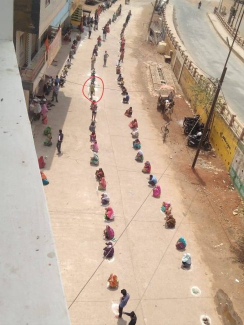 पूर्व विधायक जजपाल सिंहको कार्यालयमा राहत वितरण भइरहेको जानकारी पाएपछि उनी बैशाखीको सहारामा हिँड्दै पूर्व विधायकको कार्यालय पुगेका थिए । त्यहाँ पुग्दा उनले कार्यालय बाहिर लामो लाइन देखे । सामाजिक दूरी कायम गर्नको लागि सडकमा गोलो घेराहरु बनाइएका थिए । यो देखेर भगवत सिंह पनि एउटा गोलो घेराभित्र उभिए ।