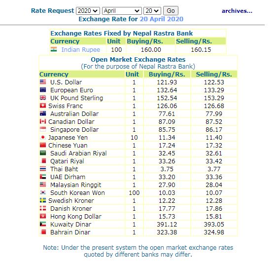 यस्तो छ सबै देशको विनिमयदर तालिका