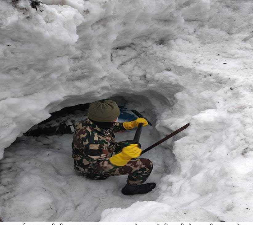 अन्य हराई रहेका एक जना नेपाल र एक जना कोरियन नागरिक हिउँभित्र पुरिएको आशंकामा संभावित स्थानमा खोजी जारी राखिएको सेनाले जनाएको छ।