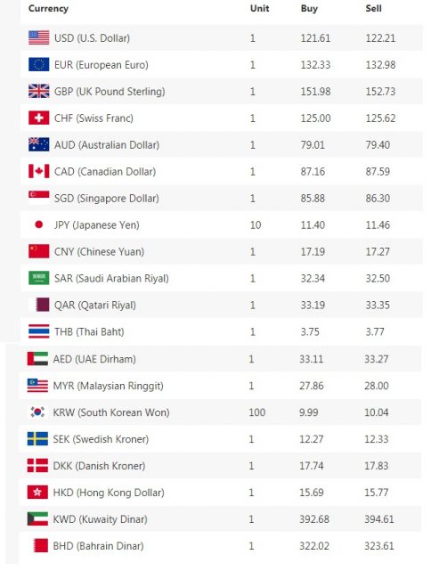 यस्तो छ सबै देशको विनिमयदर तालिका