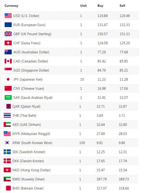 यस्तो छ सबै देशको विनिमयदर तालिका