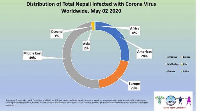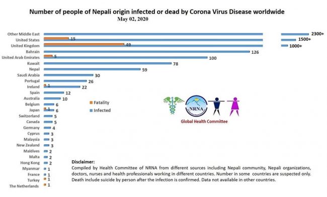 विश्वभर छरिएका गैरआवासीय नेपाली विज्ञ चिकित्सकको समूहले तयार पारेको सो आँकडा नुसार २७ देशमा रहेका नेपाली कोरोना भाइरसबाट संक्रमित छन्।