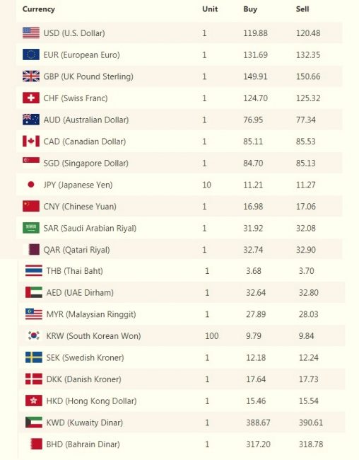 यस्तो छ सबै देशको विनिमयदर तालिका