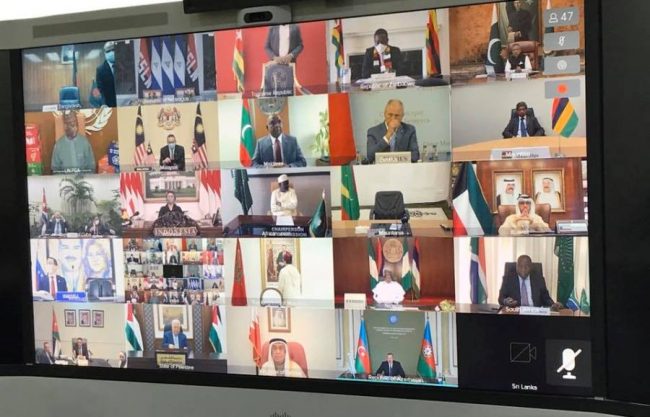 उनले यस संकटको घडीमा असंलग्न राष्ट्रहरु एकताबद्ध हुनुर्ने र कोभिड–१९ लाई पराजित गर्न तथा शान्ति, स्थायित्व र समृद्धिको साझा आकांक्षा प्राप्तिमा सहयोग पुर्याउन बहुपक्षीयता र विश्वव्यापी सहयोगलाई समर्थन गर्नुपर्नेमा जोड दिए ।