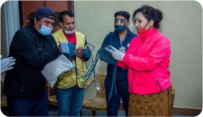 कोरोनाभाइरसः ‘फ्रन्टलाइन’मा खटिनेहरुलाई सुरक्षा सामग्री वितरण गर्दै समाजसेवी भण्डारी