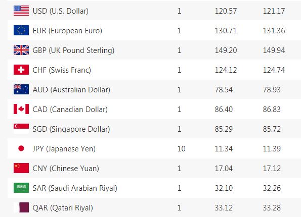 यस्तो छ सबै देशको विनिमयदर तालिका