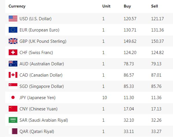यस्तो छ सबै देशको विनिमयदर तालिका