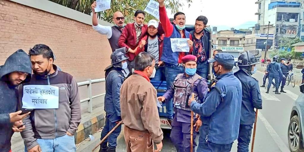लैनचौरस्थित भारतीय दूतावास बाहिर प्रदर्शन गर्ने क्रममा प्रहरीले हस्तक्षेप गर्दै १५ प्रदर्शनकारीलाई पक्राउ पक्राउ गरेको छ। भारतले नेपाली भूमिबाट सडक निर्माण गरेको भन्दै भारतीय दूतावास अगाडि बिरोध प्रदर्शन गर्दा युवा/ विद्यार्थीहरुलाई प्रहरीले पक्राउ गरेको राप्रपा नेता राजाराम बर्तौलाले जानकारी दिए।
