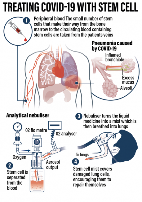 विश्वमा कोरोनाको उपचारको लागी बिभिन्न किसिमका पद्धती तथा औषधीको परीक्षण हुदै आएको अवस्थामा स्टेम सेल थेरापी विधिको उपचार पद्धतीले नया आशा जगाएको छ ।