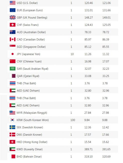 यस्तो छ सबै देशको विनिमयदर तालिका