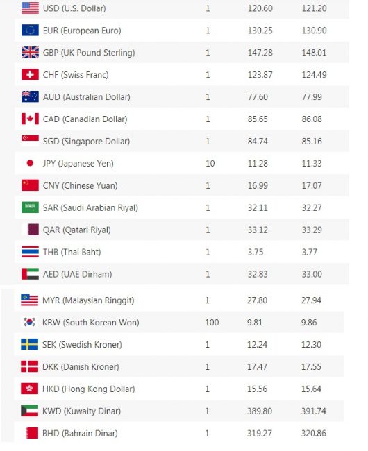यस्तो छ सबै देशको विनिमयदर तालिका