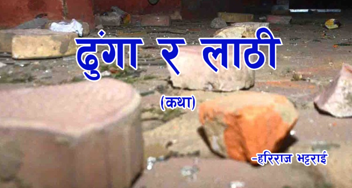‘ए, जसरी जनै र खुकुरी हिजोआज चीनबाट आउँछ त्यसैगरी लाठी पनि आउँछन्। जति पनि लाठी पाइन्छन् त्यहाँ। यहाँ चाहिं हामी ढुंगा हानेरै आफ्नो रिस मार्छौ। केटाहरु चाँहि बेसरी लठ्ठीले चुटेर आफ्नो रिस पोखेर आउँछन्। ऊ उनीहरु पनि आईपुगे।’