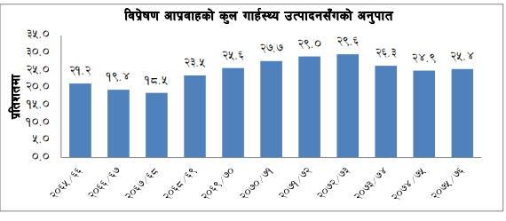 बैदेशिक रोजगारीमा जाने युवाहरुको संख्या बृद्धिसँगै देशको अर्थतन्त्रमा रेमिट्यान्स मुख्य हिस्साको रुपमा रहदै आएको छ । राष्ट्र बैंकले नै सार्वजनिक गरेको एक अध्ययन प्रतिवेदन अनुसार आर्थिक वर्ष २०५७/५८ मा विप्रेषण आप्रवाहको कुल गार्हस्थ्य उत्पादनसँगको अनुपात १०.७ प्रतिशत रहेकोमा आर्थिक वर्ष २०७५/७६ मा २५.४ प्रतिशत पुगेको छ ।