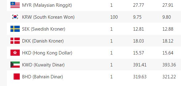 युएई दिराम एकको खरिददर ३२ रुपैयाँ ८६ पैसा छ भने बिक्रिदर ३३ रुपैयाँ २ पैसा रहेको छ। मलेसियन रिँगिट एकको खरिददर २७ रुपैयाँ ७७ पैसा तथा बिक्रिदर २७ रुपैयाँ ९१ पैसा रहेको छ।