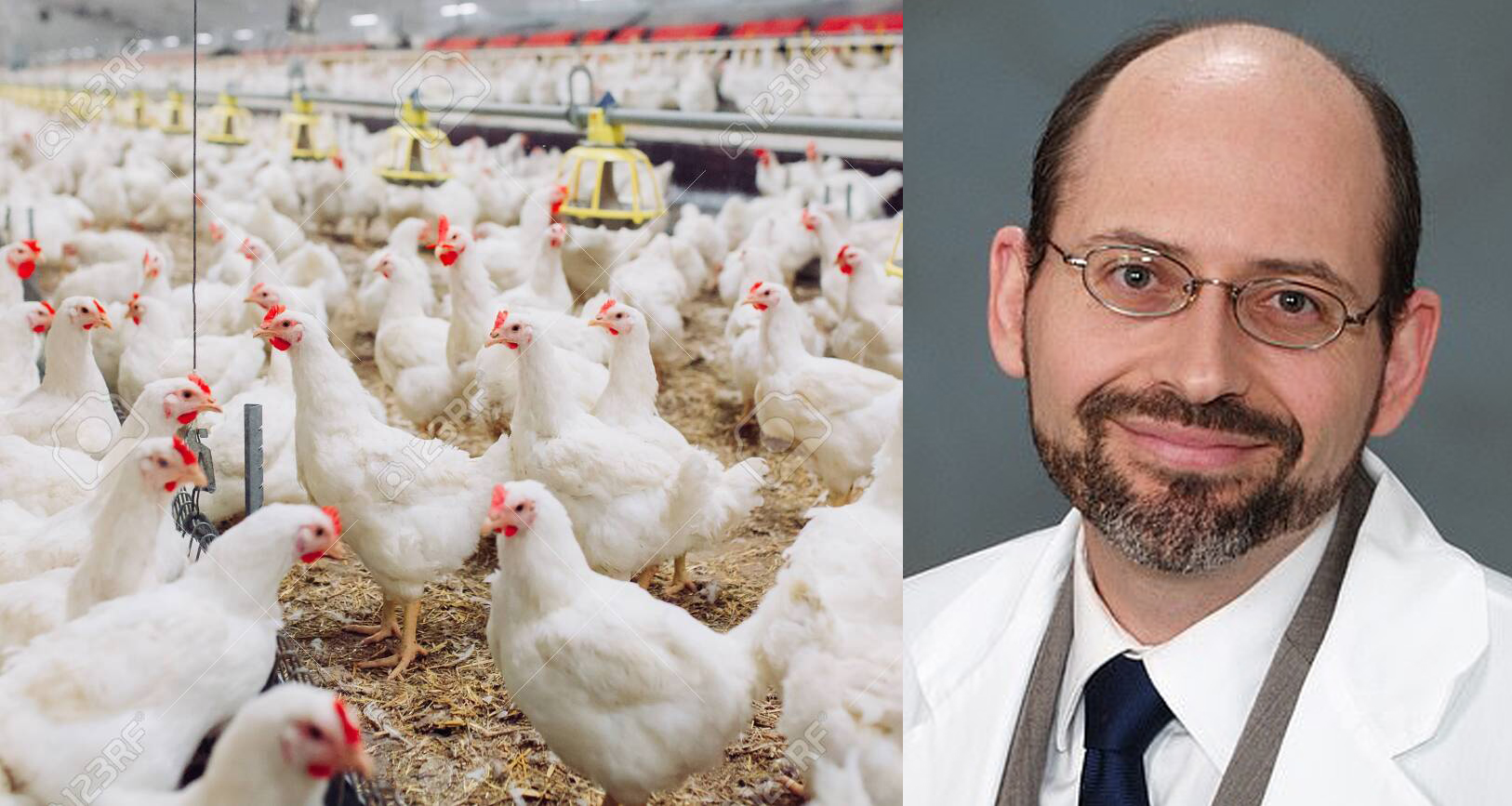 मानिसहरुलाई केवल शाकाहारी खाना खान सल्लाह दिने वैज्ञानिक मायकल ग्रेगरले आफ्नो नयाँ किताब ‘महामारीको क्रममा कसरी बच्ने’ (हाउ टु सर्भाइभ अ प्यान्डेमिक)मा भनेका छन् कि ठूलो मात्रामा कुखुरापालन बढ्दै जाँदा खतरा बढेको छ । ग्रेगरका अनुसार कुखुरा फार्मबाट निस्किने भाइरस यतिसम्म खतरनाक हुनेछ कि आधा विश्व खतरामा पर्नेछ ।