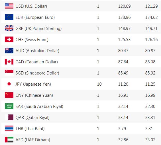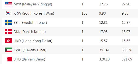 युएई दिराम एकको खरिददर ३२ रुपैयाँ ८६ पैसा छ भने बिक्रिदर ३३ रुपैयाँ २ पैसा रहेको छ। मलेसियन रिँगिट एकको खरिददर २७ रुपैयाँ ७६ पैसा तथा बिक्रिदर २७ रुपैयाँ ९० पैसा रहेको छ।