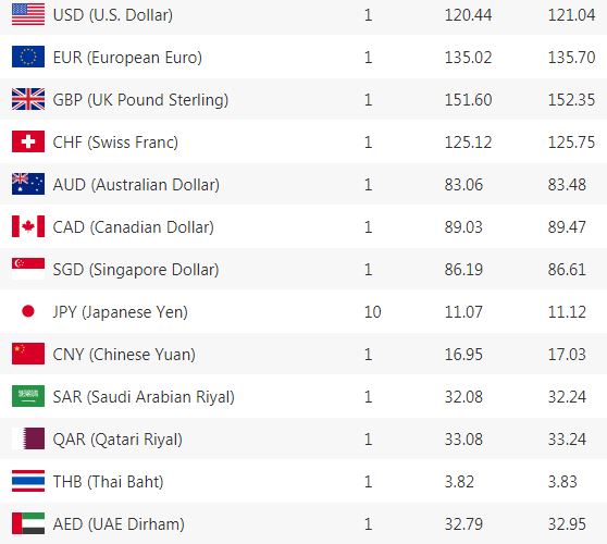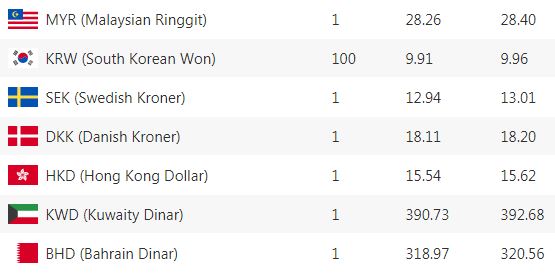 युएई दिराम एकको खरिददर ३२ रुपैयाँ ७९ पैसा छ भने बिक्रिदर ३२ रुपैयाँ ९५ पैसा रहेको छ। मलेसियन रिँगिट एकको खरिददर २८ रुपैयाँ २६ पैसा तथा बिक्रिदर २८ रुपैयाँ ४० पैसा रहेको छ।