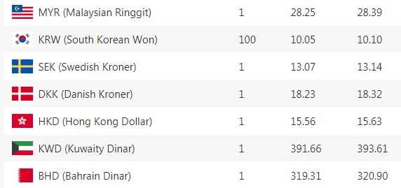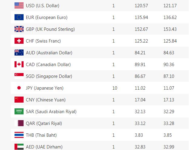 युएई दिराम एकको खरिददर ३२ रुपैयाँ ८३ पैसा छ भने बिक्रिदर ३२ रुपैयाँ ९९ पैसा रहेको छ। मलेसियन रिँगिट एकको खरिददर २८ रुपैयाँ २५ पैसा तथा बिक्रिदर २८ रुपैयाँ ३९ पैसा रहेको छ।