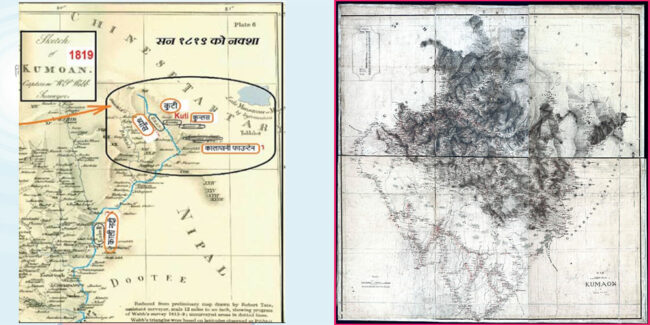 काठमाडौं । सुगौली सन्धिलगत्तै सन् १८१९ मा प्रकाशित नक्सामा लिम्पियाधुराबाट आउने नदीलाई काली नदी लेखिएको छ। यो नै सुगौली सन्धिपछिको नेपाल–भारत सीमा काली नदी भएको पहिलो नक्सा हो।