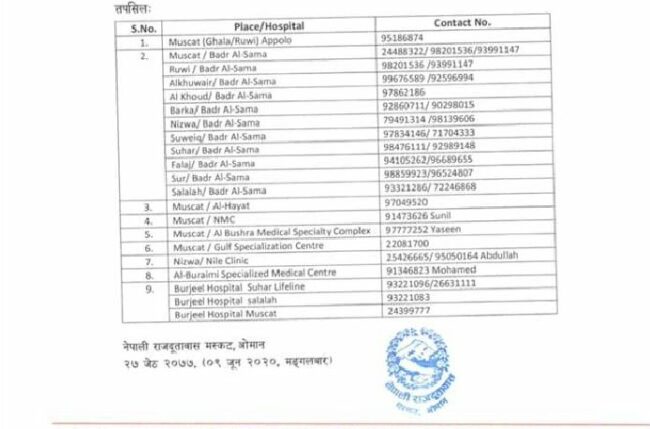 दूतावासले पीसीआर जाँच गर्ने ठाउँ र सम्पर्क नम्बरहरु पनि उपलब्ध गराएको छ।