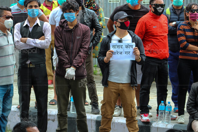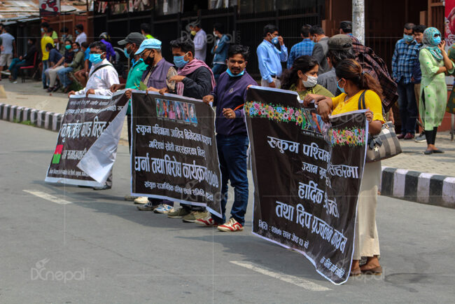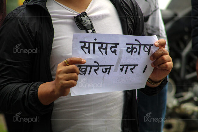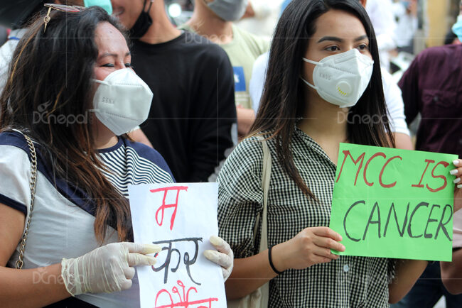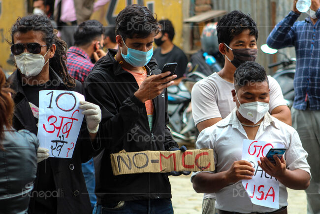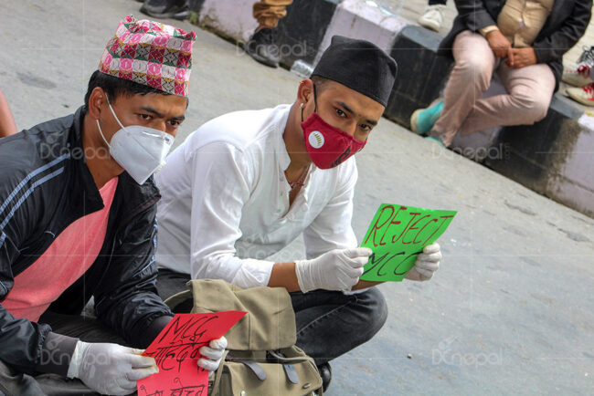 काठमाडौं । स्वतन्त्र युवा अभियानले सरकार बिरुद्ध प्रदर्शन गरेको छ । काठमाडौंको माईतीघरमा शान्तिपूर्ण प्रदर्शन गरेका युवाहरुले एमसीसी खारिज, गो ब्याक युएस तथा जनताले कर किन तिर्ने लगायतका प्लेकार्ड बोकेर प्रदर्शन गरेका छन । सरकारले तोकेको निषेधित क्षेत्र भन्दा बाहिर प्रदर्शन गरेका युवाहरुले अन्त्यमा सरकार बिरोधि नाराबाजि पनि गरेका थिए ।