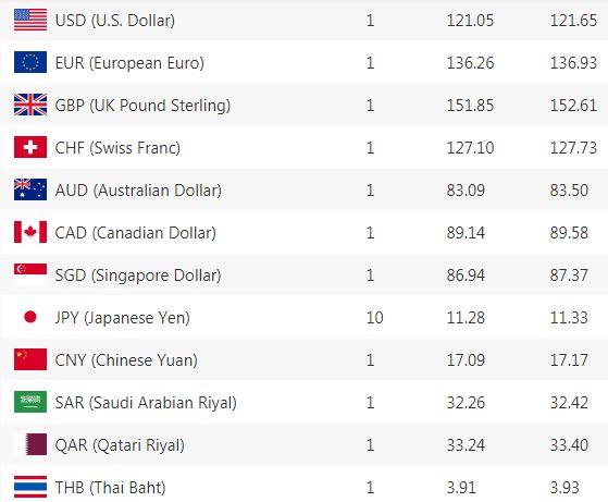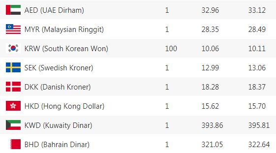 युएई दिराम एकको खरिददर ३२ रुपैयाँ ९६ पैसा छ भने बिक्रिदर ३३ रुपैयाँ १२ पैसा रहेको छ। मलेसियन रिँगिट एकको खरिददर २८ रुपैयाँ ३५ पैसा तथा बिक्रिदर २८ रुपैयाँ ४९ पैसा रहेको छ।