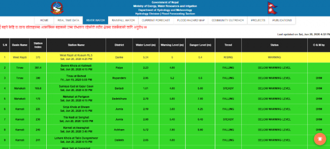 राप्ती नदीमा बाढी, डुडुवा र राप्ती सोनारीमा सतर्कता अपनाउन चेतावनी जारी