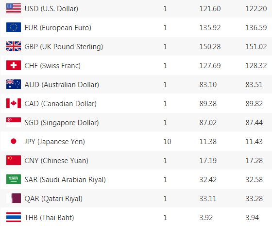 युएई दिराम एकको खरिददर ३३ रुपैयाँ ११ पैसा छ भने बिक्रिदर ३३ रुपैयाँ २७ पैसा रहेको छ। मलेसियन रिँगिट एकको खरिददर २८ रुपैयाँ ५० पैसा तथा बिक्रिदर २८ रुपैयाँ ६४ पैसा रहेको छ।