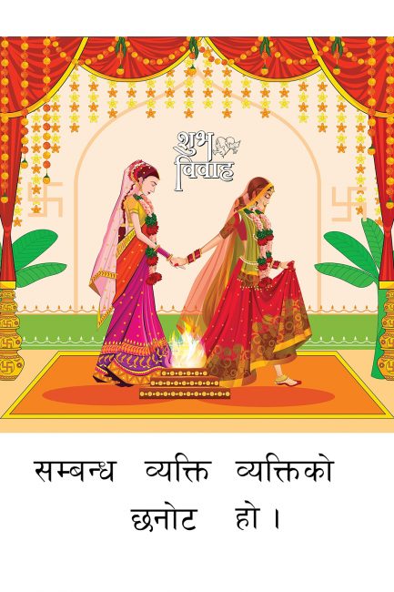 विवाहको रोजाइ मानव अधिकार हो र छ ताकि सबै लिंग तथा लैंगिकताका अल्पसंख्यक जोडीहरूले स्वतन्त्र तथा जिम्मेवारीपूर्वक आफ्नो विवाहका बारेमा रोज्न पाऊन।