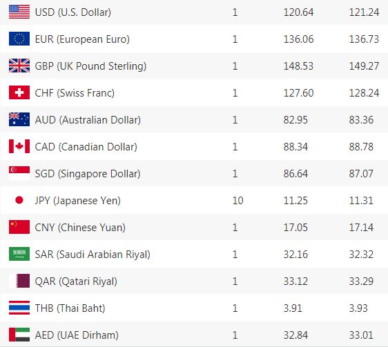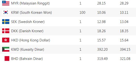 युएई दिराम एकको खरिददर ३२ रुपैयाँ ८४ पैसा छ भने बिक्रिदर ३३ रुपैयाँ १ पैसा रहेको छ। मलेसियन रिँगिट एकको खरिददर २८ रुपैयाँ १५ पैसा तथा बिक्रिदर २८ रुपैयाँ २९ पैसा रहेको छ।