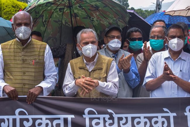 पूर्व प्रधानमन्त्री समेत रहेका जसपाका नेता बाबुराम भट्टराई, पूर्व उपप्रधानमन्त्री समेत रहेका जसपाका अध्यक्ष उपेन्द्र यादव, अध्यक्ष महन्थ ठाकुर, पूर्व मन्त्री हिसिला यमी लगायतका नेता तथा कार्यकर्ताले सडकमा सरकार विरुद्ध नारा लगाएका थिए।