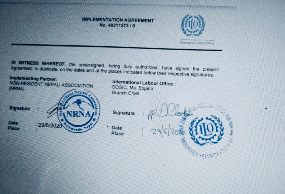 सहयोगको लागि गैरआवासीय नेपाली संघको तर्फबाट संघका उपाध्यक्ष डा. बद्री केसी, महासचिव डा. हेमराज शर्मा, डा.पुरु श्रेष्ठ र एकनाथ खतिवडाले प्रपोजल तयार पारेका थिए । आइएलओले सो प्रस्तावलाई करिब ५ हप्ता लगाएर अध्ययन गरेपछि आर्थिक सहयोग गर्ने निष्कर्षमा पुगेको थियो । अन्तर्राष्ट्रिय श्रम संगठनले विश्वभर छरिएका श्रमिकको हितमा काम गर्दै आएको छ ।