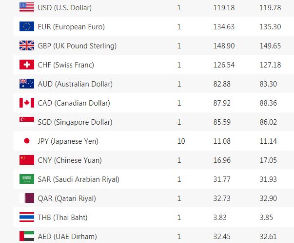 युएई दिराम एकको खरिददर ३२ रुपैयाँ ४५ पैसा छ भने बिक्रिदर ३२ रुपैयाँ ६१ पैसा रहेको छ। मलेसियन रिँगिट एकको खरिददर २७ रुपैयाँ ८६ पैसा तथा बिक्रिदर २८ रुपैयाँ रहेको छ।