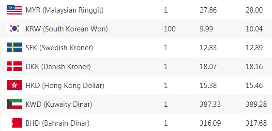 कुवेती दिनार एकको खरिददर ३८७ रुपैयाँ ३३ पैसा तथा बिक्रिदर ३८९ रुपैयाँ २८ पैसा रहेको छ। बहराईन दिनार एकको खरिददर ३१६ रुपैयाँ ९ पैसा तथा बिक्रिदर ३१७ रुपैयाँ ६८ पैसा रहेको छ।