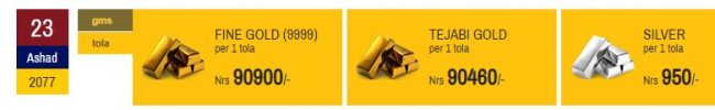 यस्तै, आज तेजावी सुन तोलामा ९० हजार ४६० रुपैयाँमा कारोबार भइरहेको छ ।
