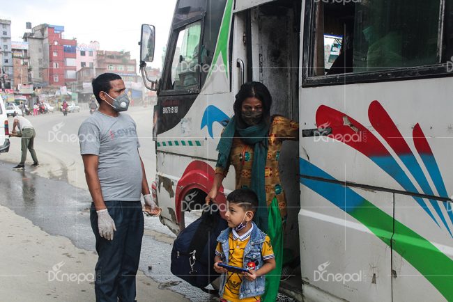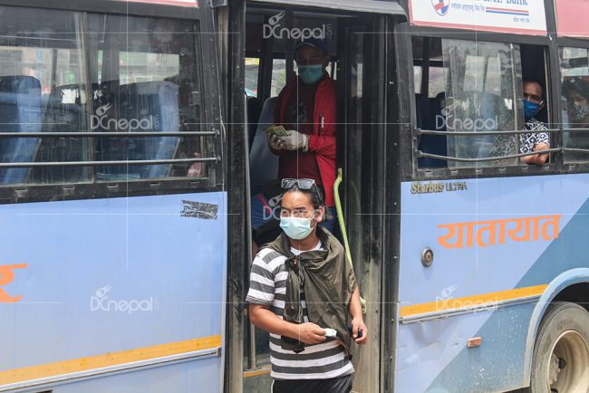 केहि यातायातमा चढने बेला स्यानिटाईजरको ब्यवस्था गरिए पनि यात्रुहरुले सिटमा बस्दा समाजिक दुरी पालना गरिएको देखिएन भने केहि यातायातमा स्यानिटाईजरको व्यवस्था पनि गरिएको छैन । सञ्चालनमा आएका बसहरुमा सरकारले तोकेको मापदण्डअनुसार बसमा एक पङ्तिको सिटमा एक जना बस्ने भनिए पनि नियम लागु भएको छैन ।