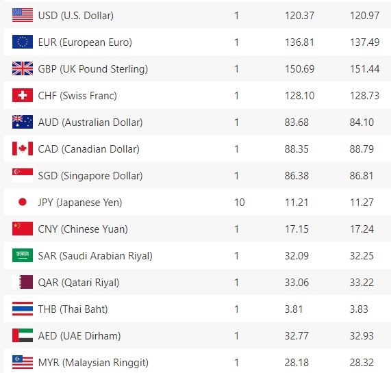 युएई दिराम एकको खरिददर ३२ रुपैयाँ ७७ पैसा छ भने बिक्रिदर ३२ रुपैयाँ ९३ पैसा रहेको छ। मलेसियन रिँगिट एकको खरिददर २८ रुपैयाँ १८ पैसा तथा बिक्रिदर २८ रुपैयाँ ३२ पैसा रहेको छ।